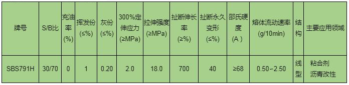 恒泰石化SBS791H質量指標: